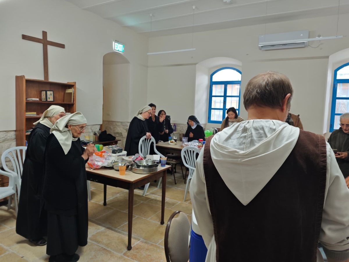 Au monastère, nous avons maintenu la procession des Rameaux ‘en interne, avec prudence’, et seulement la communauté des Béatitudes, heureuse de nous rejoindre comme elle en a l’habitude.