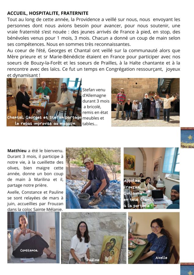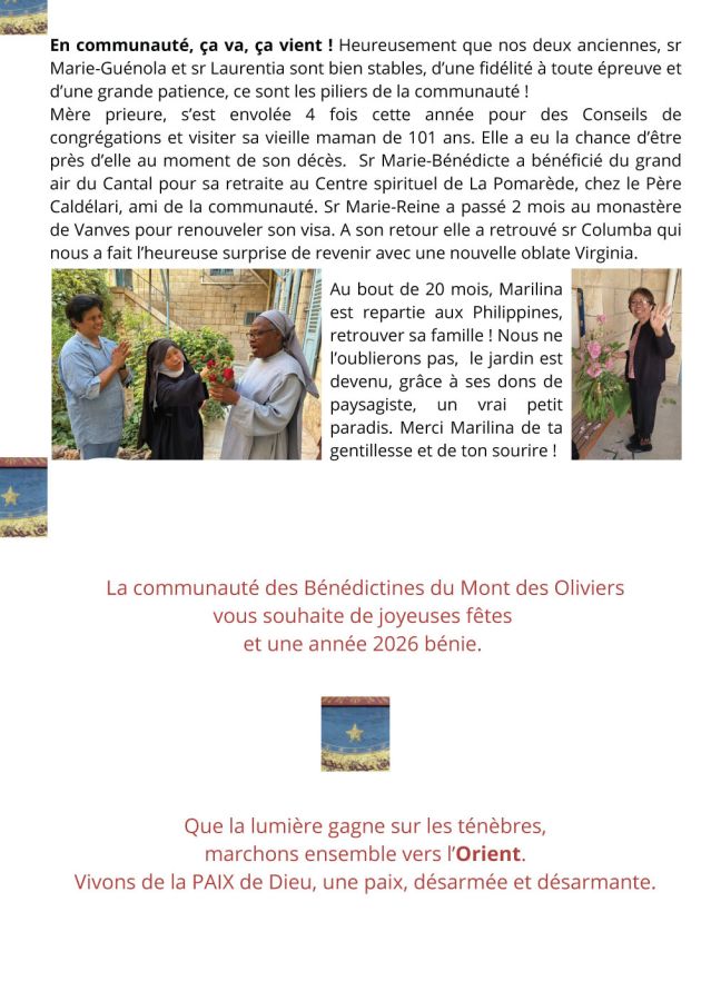 Nous sommes heureuses de vous partager ce que nous avons vécu l'année 2021 sur le Mont des Oliviers.