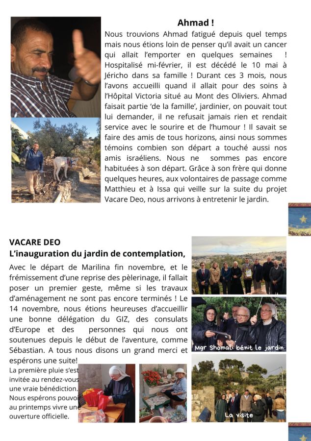 Nous sommes heureuses de vous partager ce que nous avons vécu l'année 2019 sur le Mont des Oliviers.